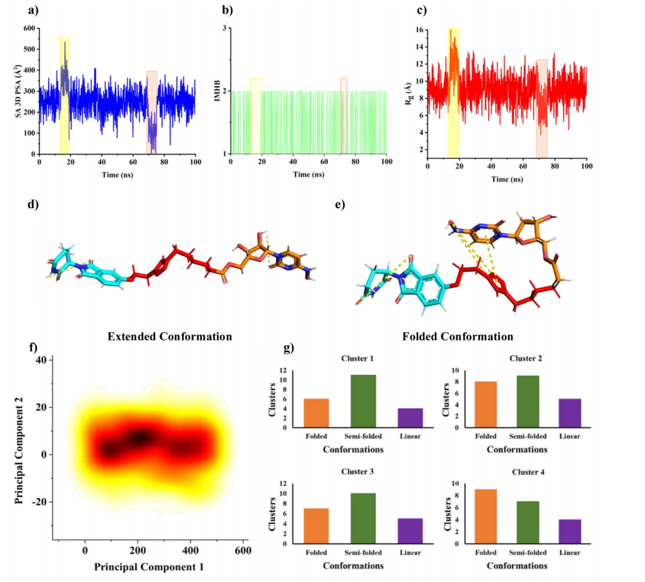 机制研究表明,PROTAC 10具有显著的正协同效应(α=45.9),能高效诱导RdRp与CRBN形成稳定三元复合物(结合自由能ΔGTER=-247 kcal/mol),通过泛素-蛋白酶体途径特异性降解RdRp。细胞实验验证,其半数降解浓度(DC50=1.97 μM)低于半数抑制浓度(IC50=3.12 μM),实现降解驱动的抗病毒活性,且对CRBN经典底物无明显影响,展现出良好的靶向选择性。此外,该分子通过独特的“变色龙”行为,在非极性环境中形成分子内氢键降低极性表面积,有效提升细胞渗透性,解决了传统PROTAC分子量大、膜通透性差的关键难题。