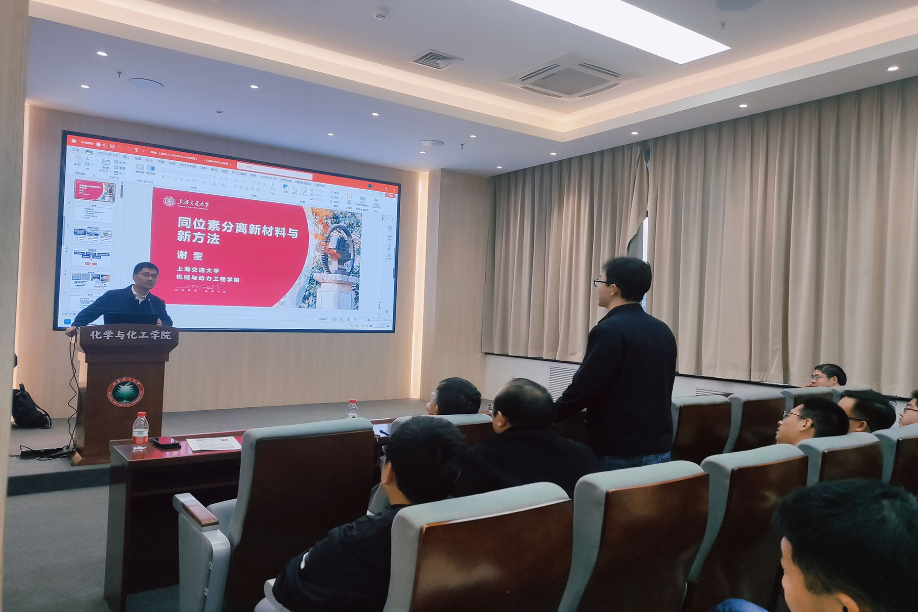 应北京理工大学化学与化工学院邀请,上海交通大学谢奎教授于2024年10月14日16:00做客北理工“百家大讲堂”,为我院广大师生带来题为“同位素分离新材料与新方法”的精彩报告。本次报告在生态楼118会议室进行,由杨国昱老师主持,近六十名化院师生参加了报告。